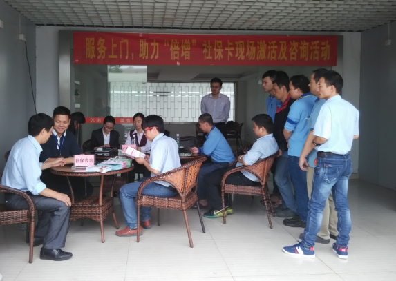 臨近年底,產(chǎn)能的沖刺又成為各部門的首要任務,在繁忙的工作之余,為解決新進員工社??せ顔栴}等后顧之憂,經(jīng)與鎮(zhèn)社保局、廣發(fā)銀行溝通,邀請其于2017年11月14日上門為員工進行社??せ?、咨詢等服務。