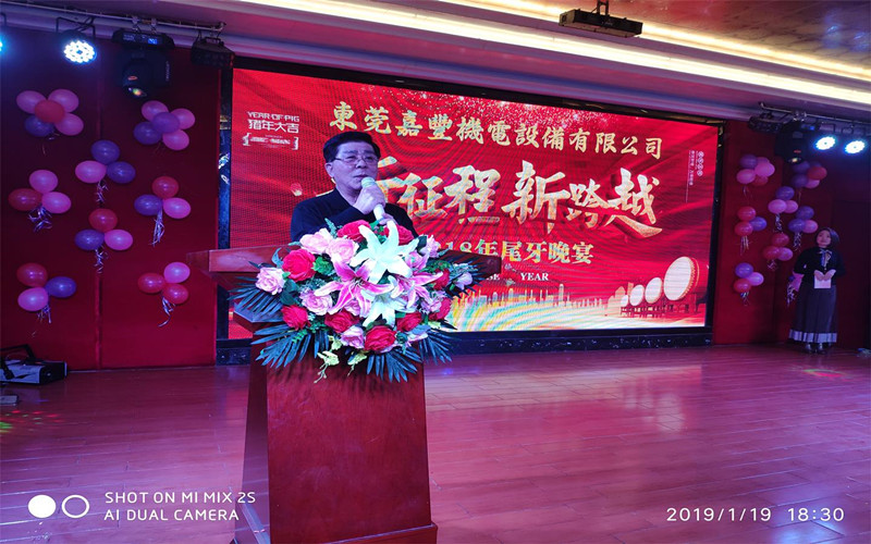 其后,總裁致辭!總裁總結(jié)性地回顧了2018年所取得的成績(jī)。2018年,對(duì)于東莞嘉豐、浙江嘉豐兩大集團(tuán)子公司的總年度營(yíng)業(yè)額超過(guò)10億表示誠(chéng)摯的感謝。2019年,我們的任務(wù)是艱巨的,在新的一年里,我們不忘初心,迎接新的挑戰(zhàn),攜手打造屬于我們自己的那一份感動(dòng)。同時(shí)也送給大家新年的美好祝愿。總裁的致辭令人振奮,員工們憧憬美好的明天!